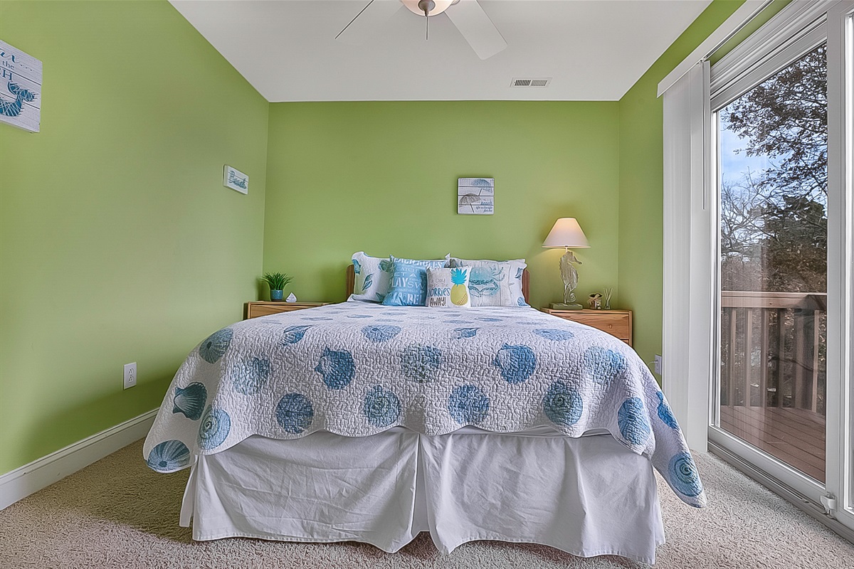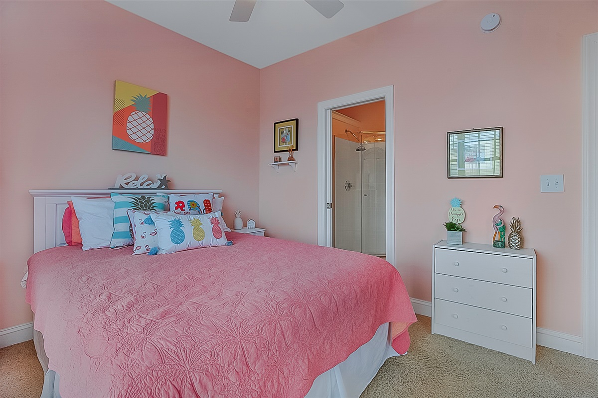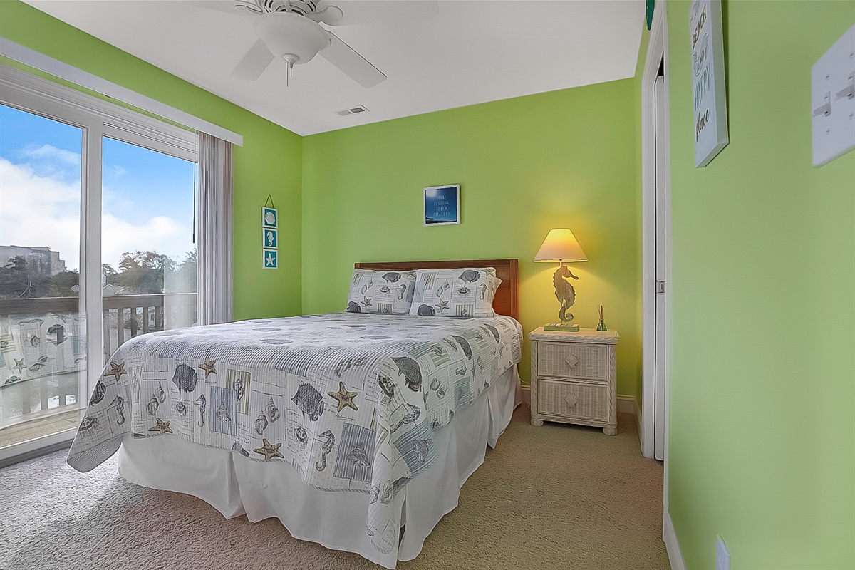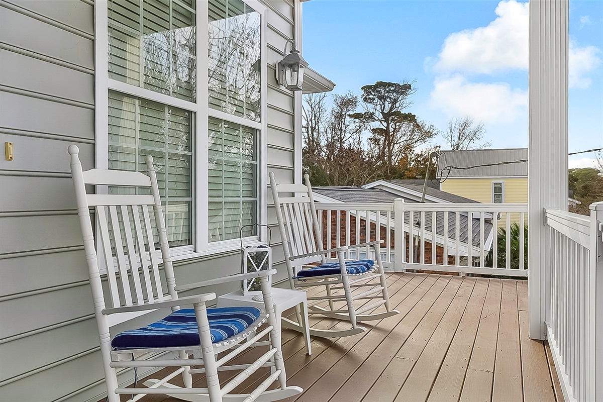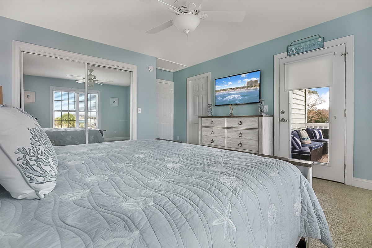 Second Floor is three additional bedrooms -- 2 Queen bedrooms w/ a shared balcony & shared full bathroom (tub/shower combo). Both bedrooms have flat screen tv's. The main bedroom w/ King bed & private bath w/ jacuzzi tub, double vanity is complete w/ private, furnished balcony. Stackable washer/dryer located on this floor.