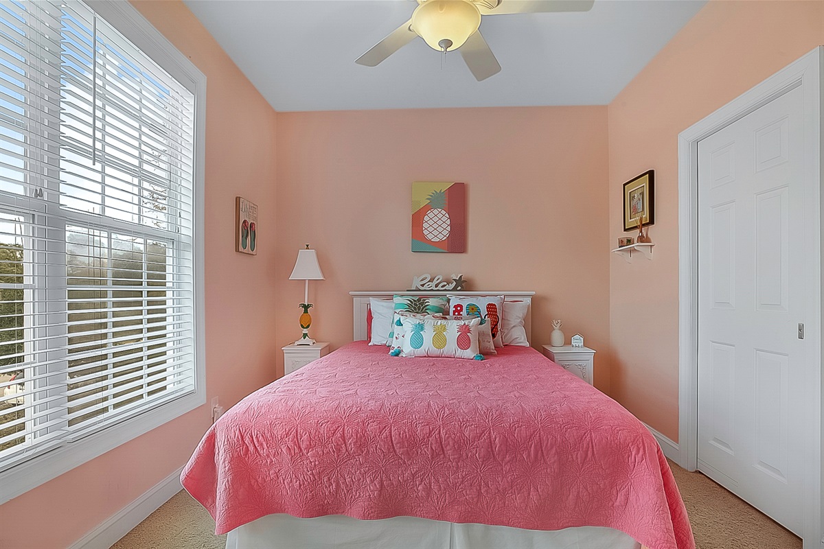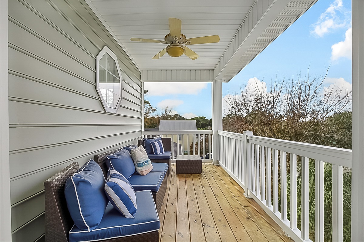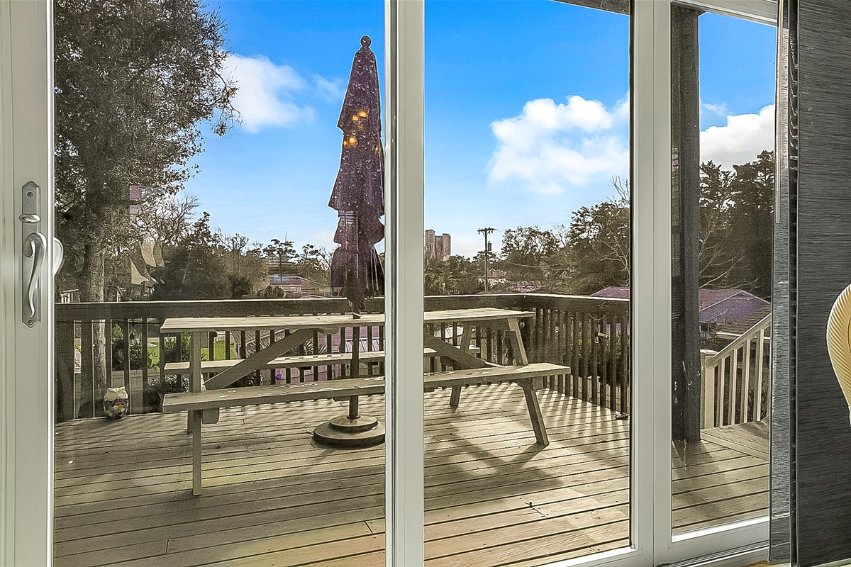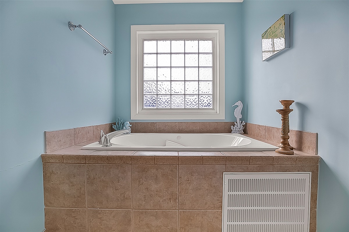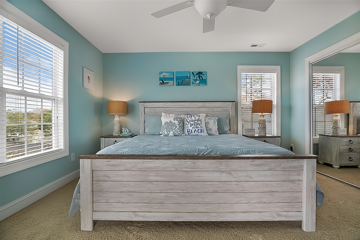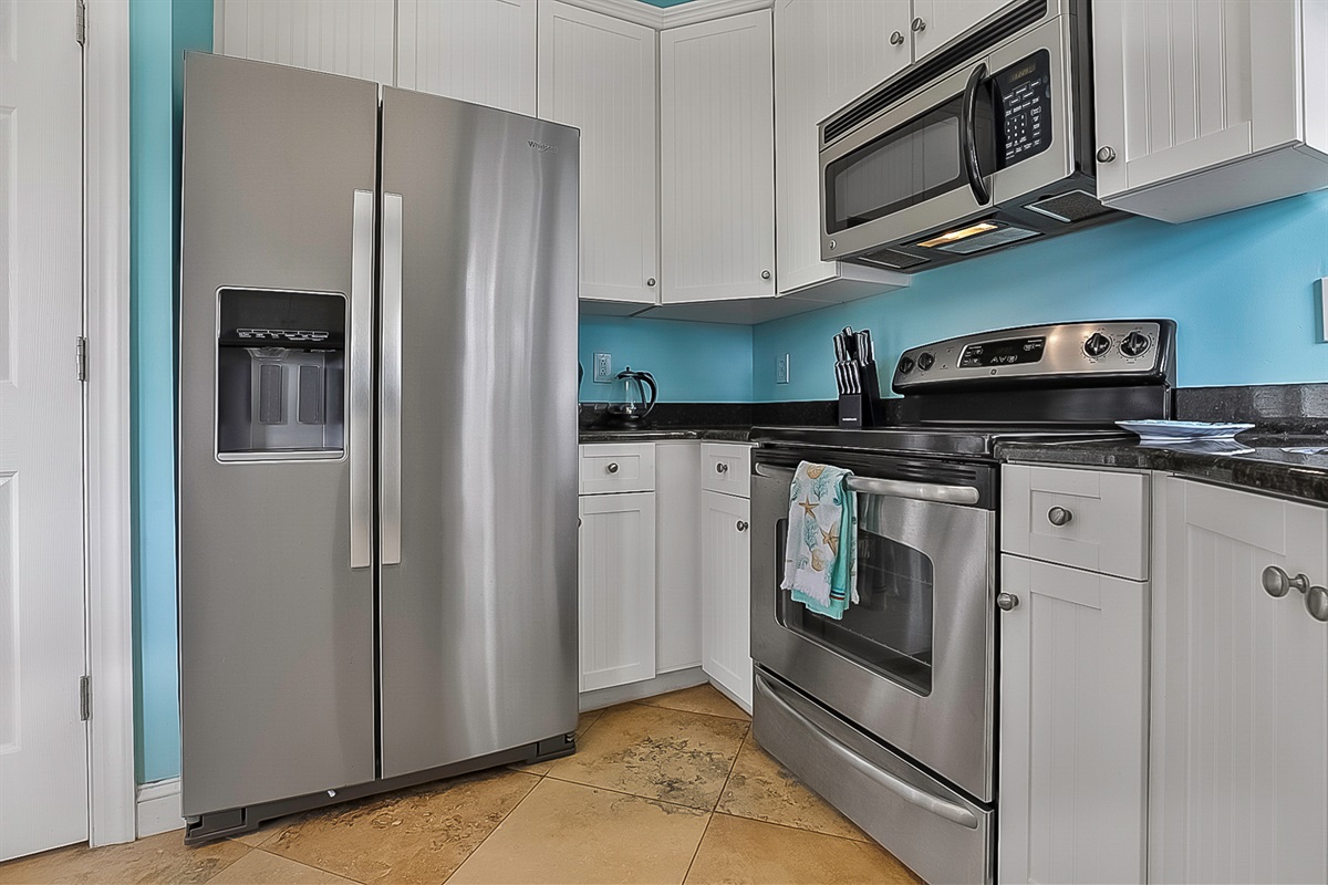 Second Floor is three additional bedrooms -- 2 Queen bedrooms w/ a shared balcony & shared full bathroom (tub/shower combo). Both bedrooms have flat screen tv's. The main bedroom w/ King bed & private bath w/ jacuzzi tub, double vanity is complete w/ private, furnished balcony. Stackable washer/dryer located on this floor.