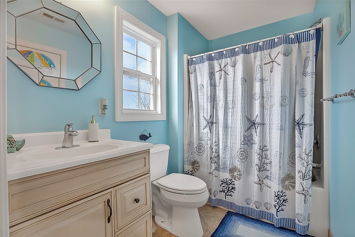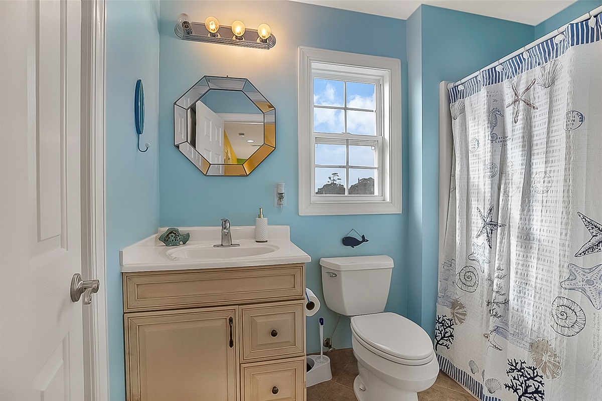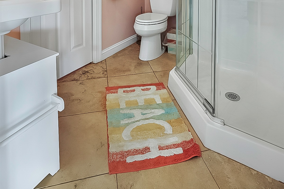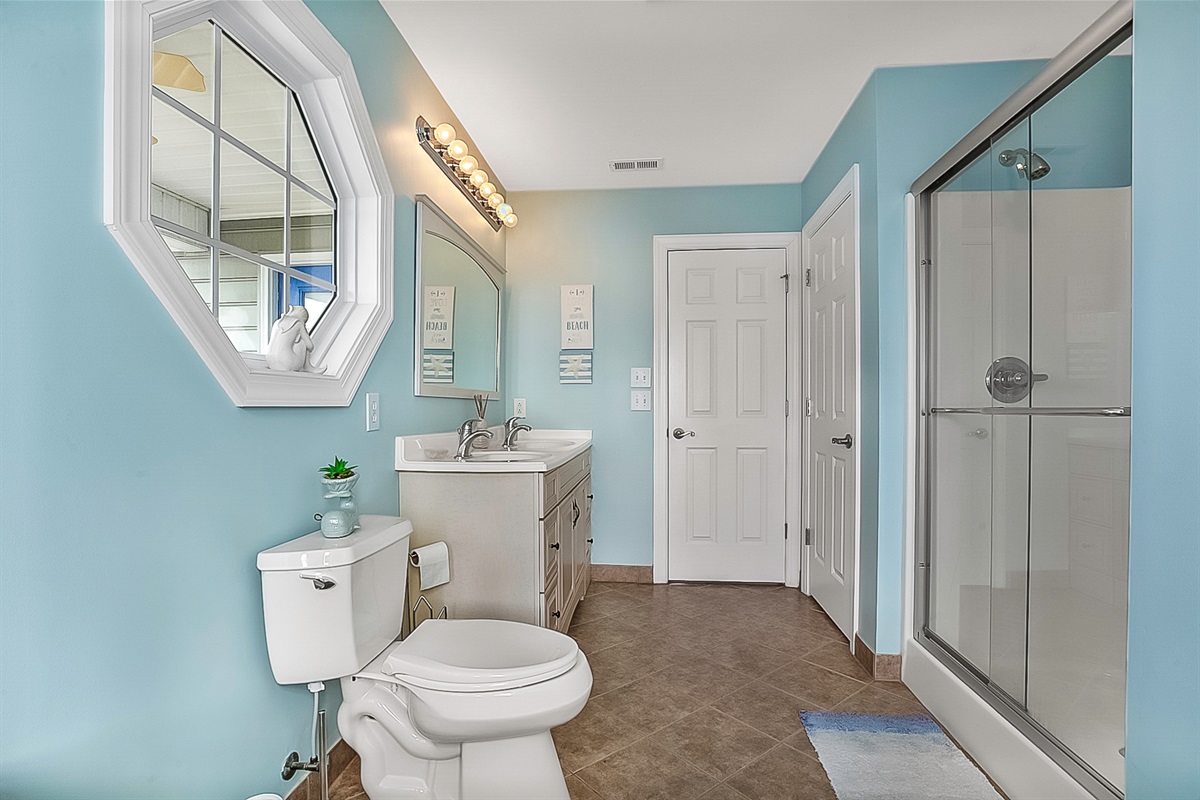 Ground Floor has a small room w/ comfortable seating w/ flat screen TV (Queen sleeper sofa w/ foam topper), plus access to the covered car port & outdoor showers & back yard. This level also has a furnished deck w/ picnic table, umbrella, Adirondack chairs, bench seating & lounge chairs for the whole group to take in the summer breezes. An outdoor shower is well-furnished with 2 shower heads, sink & toilet for easy access from the pool.