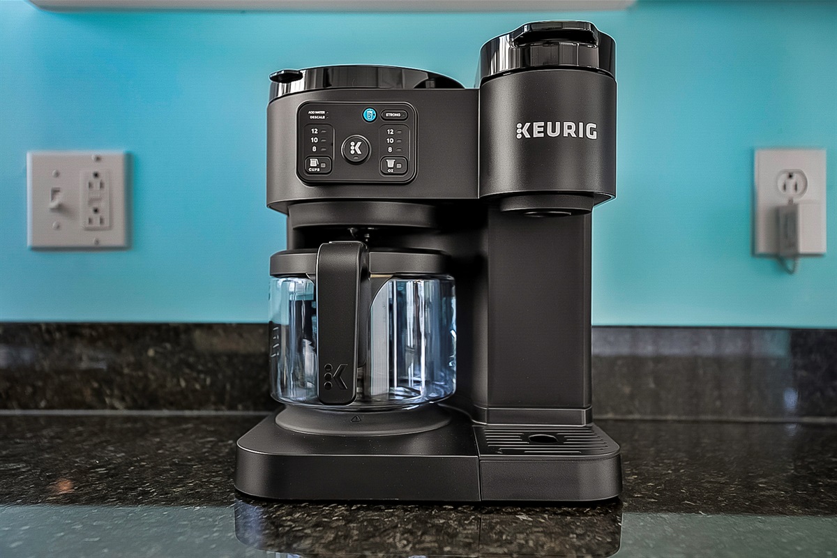 - Coffee maker,Keurig, coffee, cream, and sugar