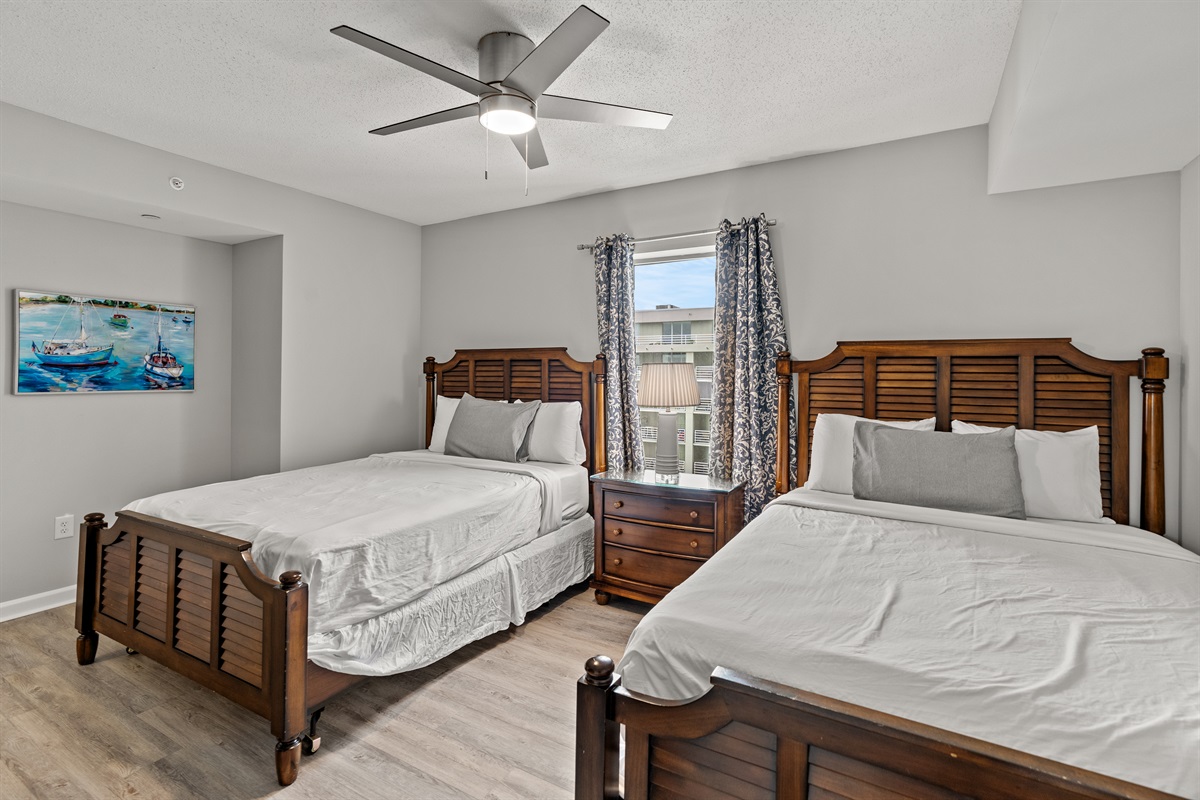 - Unwind in the cozy master suite with new king-size bed, en-suite bathroom, and direct access to the balcony. The second bedroom features two new queen beds, perfect for kids or additional guests.