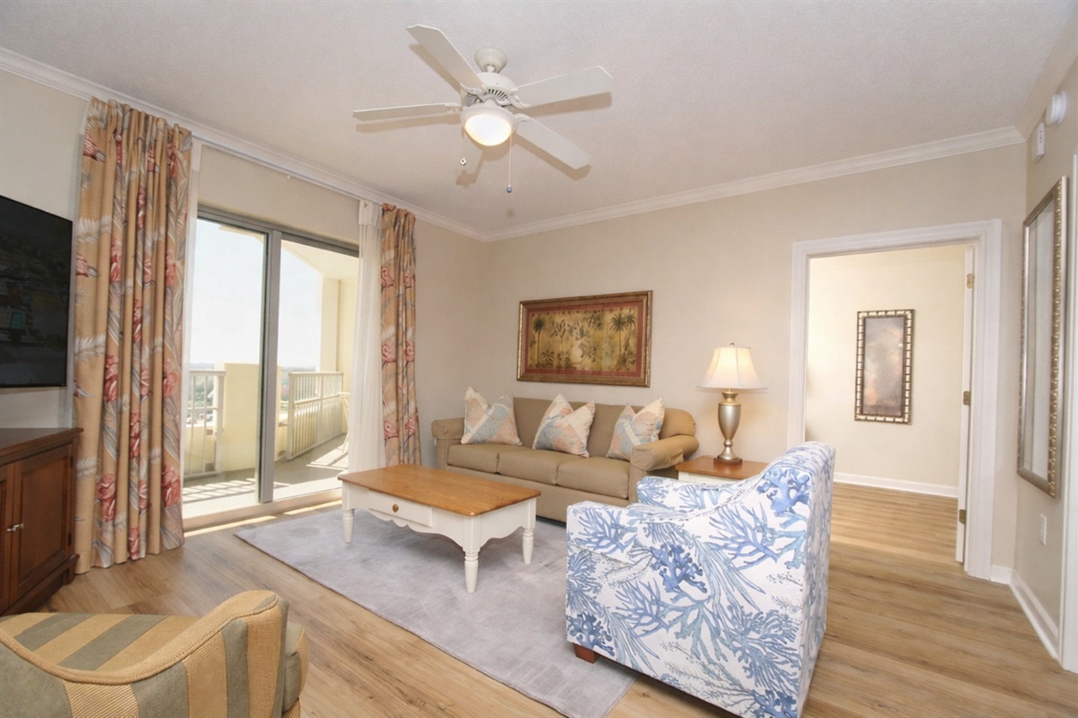 2 Bedrooms • 2 Bathrooms 2 Baths • Sleeps 1-62 Br condo is on the 8th floor of Royale Palms, connected to Hilton, Myrtle Beach. Beautiful oceanfront grounds, outdoor pool. New flooring, plus new sofa and furnishings (2026) in the family room. New smart TV's throughout the condo. The private balcony can be accessed from the living room and main bedroom. 1 King and 2 Queens.